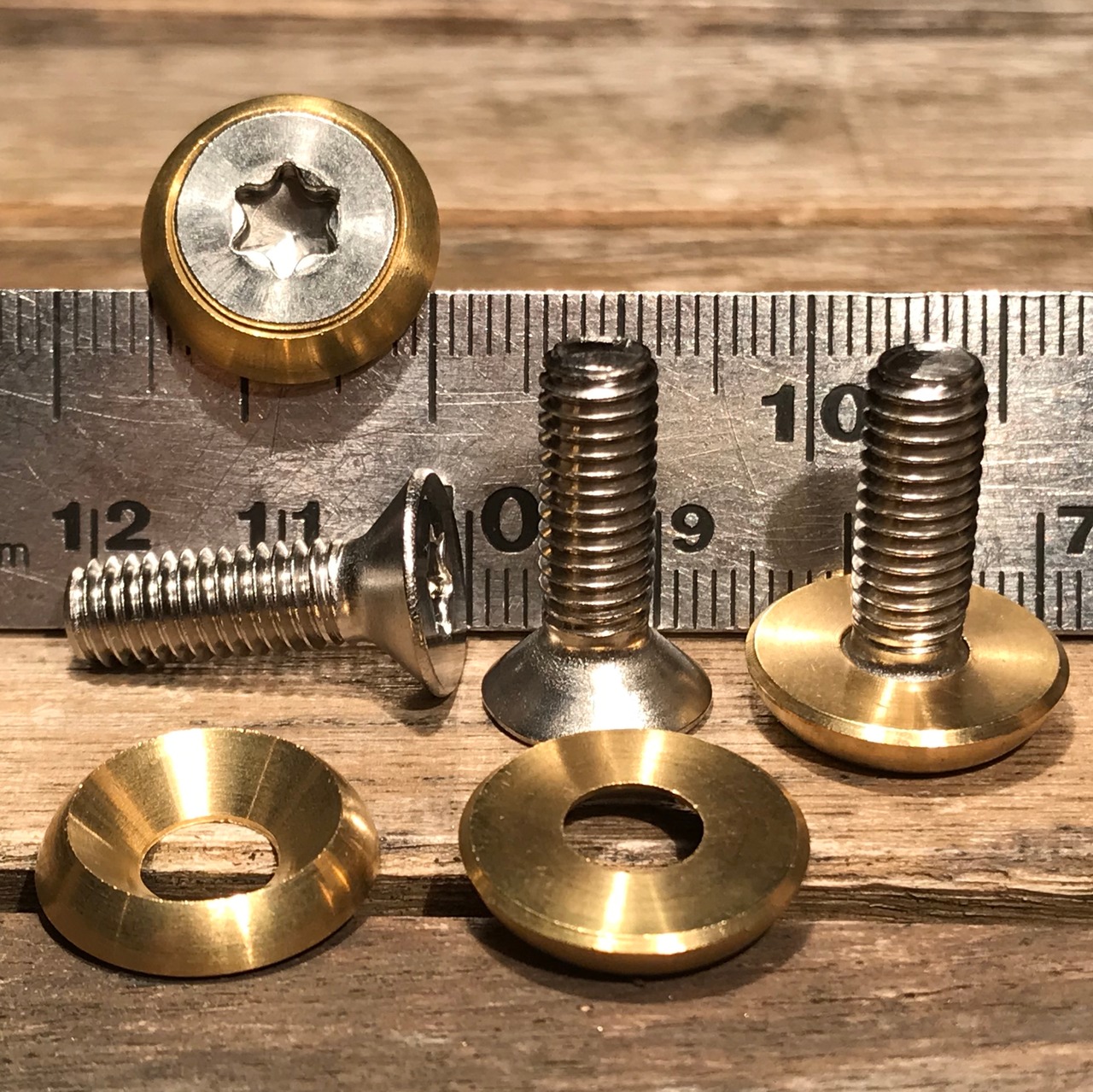 ステンレス&真鍮 TRXローゼット4本セット ナンバーボルト盗難防止「車ナ21」